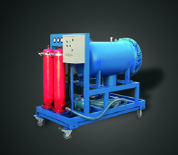 液壓潤(rùn)滑系統(tǒng)中水的存在會(huì)引起油液氧化,使油液變質(zhì),減小油膜厚度,降低潤(rùn)滑性,引起油液變性聚合而形成大分子,使油液粘度改變,形成有機(jī)酸,進(jìn)而腐蝕金屬表面,降低或喪失油液的介電強(qiáng)度。對(duì)于傳統(tǒng)的過(guò)濾與分離設(shè)備,從相互混雜在一起的一種液體中分離出另一種液體尤為困難,我公司研制的聚結(jié)分離式濾油機(jī)集精密過(guò)濾和高校脫水為一體,可有效清除油液中的顆粒雜質(zhì)和乳化水,游離水,而不損害元產(chǎn)品的品質(zhì)。對(duì)于含大量水分的油液,其分離效果尤為顯著,分離速度是傳統(tǒng)速度的幾倍到幾十倍。