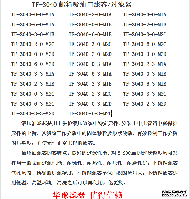 TF-3040郵箱吸油口濾芯/過(guò)濾器